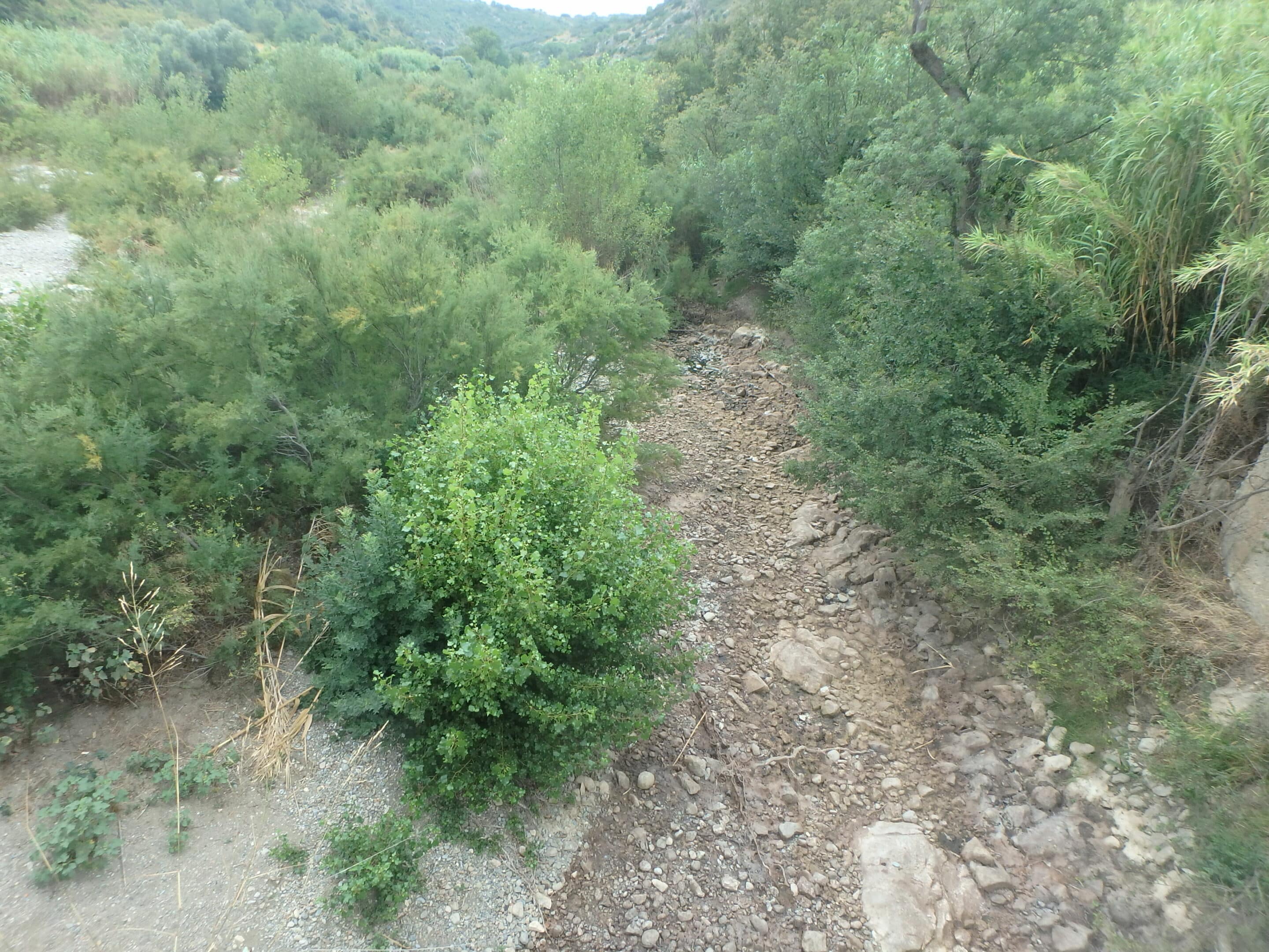Vues sur le Verdouble à l’amont de sa confluence avec l’Agly depuis le pont menant d’Estagel à Mas de Jau