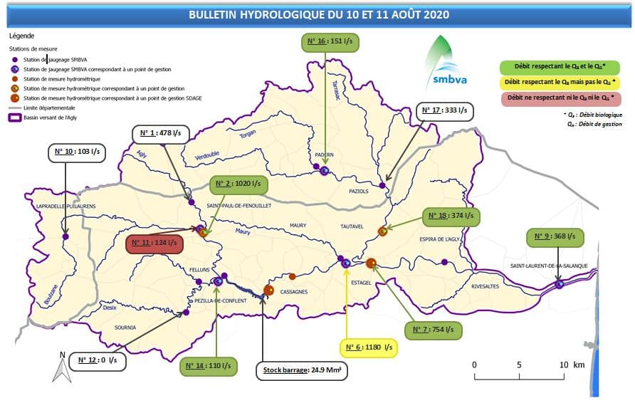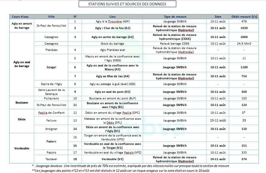 Accueil / regular / SUIVI HYDROLOGIQUE DU BASSIN VERSANT DE L’AGLY : Résultats de la campagne de mesures du 10 et 11 août 2020.