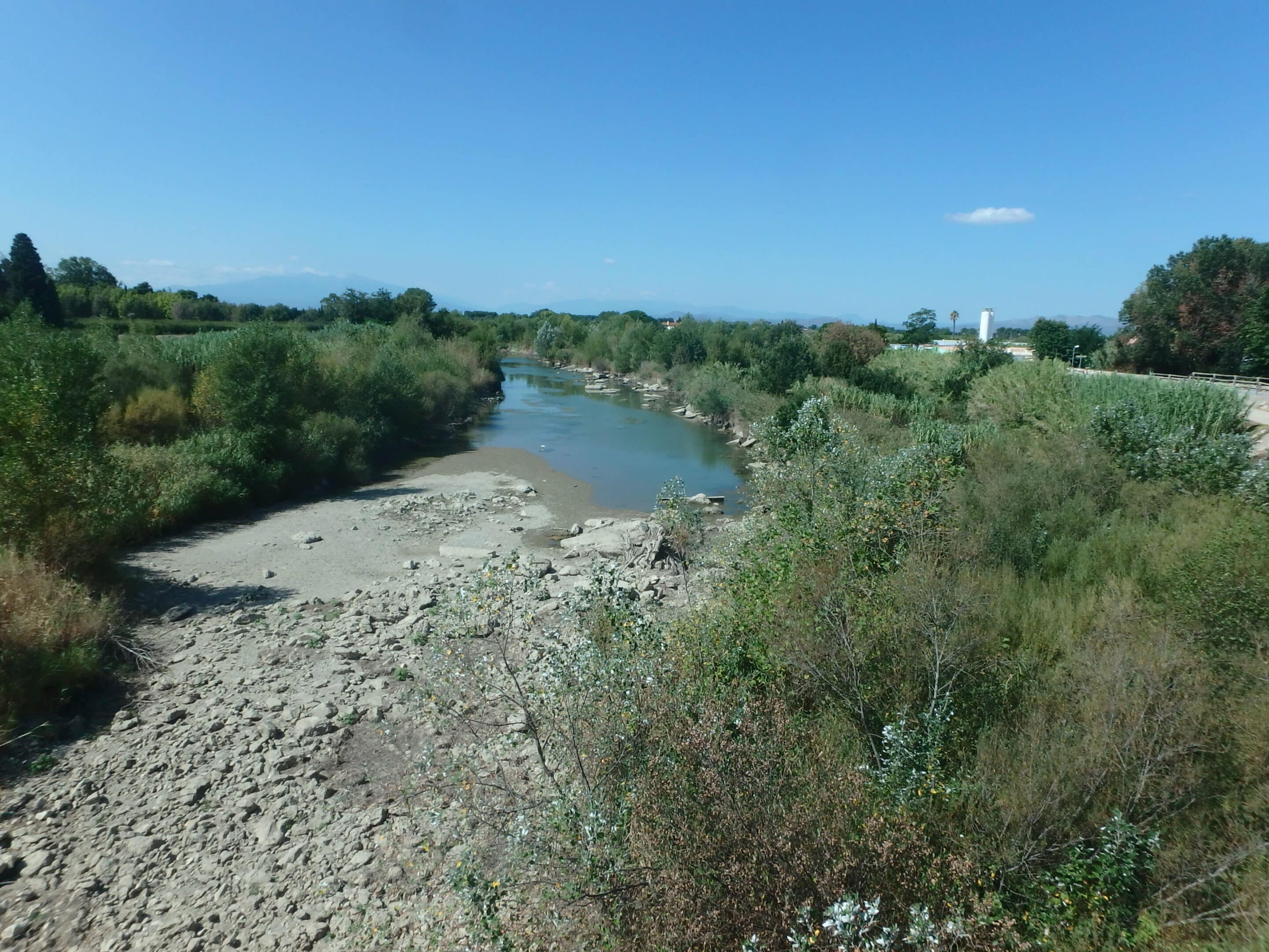 Par ailleurs, une baisse des débits est mesurées sur la Désix à Pézilla-de-Conflent (DPC) et Ansignan (D1). La station DPC n’est d’ailleurs plus jaugeable. En effet, malgré un faible écoulement présent, les hauteurs d’eau sur le substrat ne sont plus suffisantes pour permettre une mesure convenable.