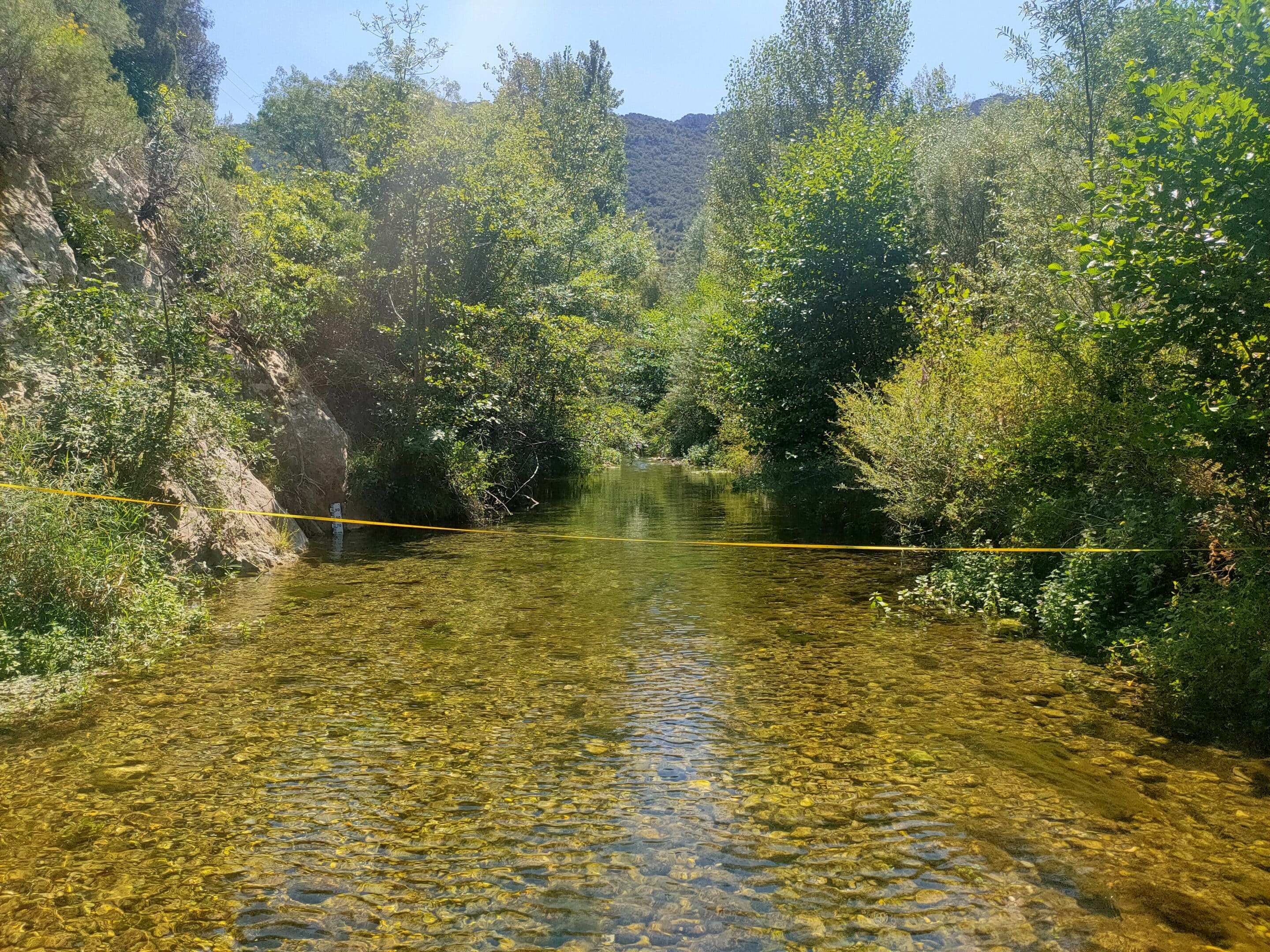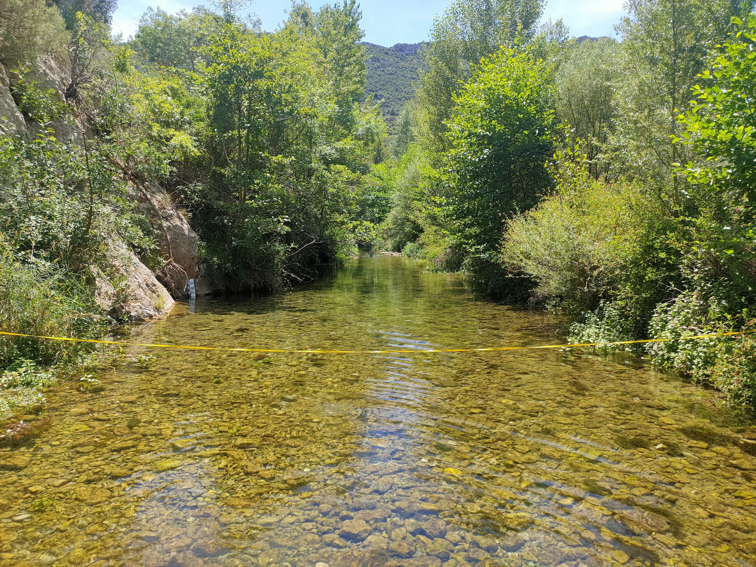 À la station hydro de la Clue de la Fou, la mesure du débit s’avère incohérente, avec une valeur de 0 l/s en raison de l’instabilité du seuil sur lequel est installé le capteur. Un jaugeage ponctuel a donc été réalisé par le SMBVA en aval de la station, permettant d’estimer le débit à 218 l/s. Cette valeur correspond globalement au seuil de crise défini par l’arrêté cadre sécheresse.